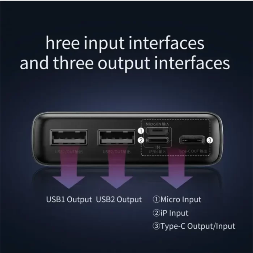 It supports PD3.0+QC3.0 tw o-way quick charge Self-charging is also very fast